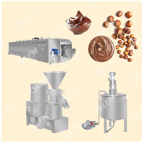 المطحنة: تطحن البندق إلى عجينة ناعمة تستخدم كأساس للدهن. تؤثر دقة الطحن بشكل مباشر على قوام دهن البندق.